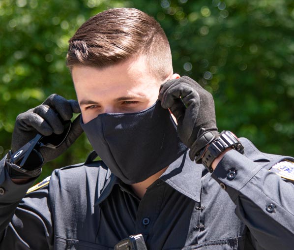 You asked, we delivered. Blauer’s new uniform face mask is designed to match dark navy or black uniform fabrics for a professional look. Following CDC guidelines for non-medical use, the FM100 mask is built with a functional 3-layer construction. Poly/cotton exterior is durable and fade-resistant, breathable non-woven interlining improves filtration, and cotton lining offers better comfort against your skin. Created with all day wear in mind, our two piece strap design is purposefully engineered for better fit and retention, with a wire inside the nosepiece for a custom bridge fit. Wear the stretch elastic straps either behind your ears or behind your head, adjust using convenient barrel locks on straps, and trim excess elastic as needed. Machine wash construction for easy care.